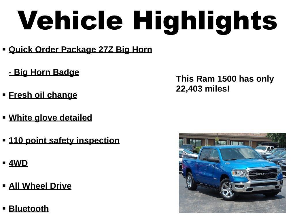 Fresh oil change, White glove detailed, 110 point safety inspection, 4WD, All Wheel Drive, Bluetooth, USB, Heated Seats, Cooled Seats, Leather Seats, Heated Steering Wheel, Navigation System, Remote Start, Sunroof /Moonroof, Keyless Entry, Blind Spot Monitor, Adaptive Cruise Control, Forward Collision Warning, Push Button Start, Keyless Ignition, Parking Assist, Towing Package, Bed Liner, One Owner, Premium Package, Premium Plus Package, Premium Sound Package, Premium Wheels, Technology Package, Tow Package, Big Horn Badge, Quick Order Package 27Z Big Horn, Traction control.